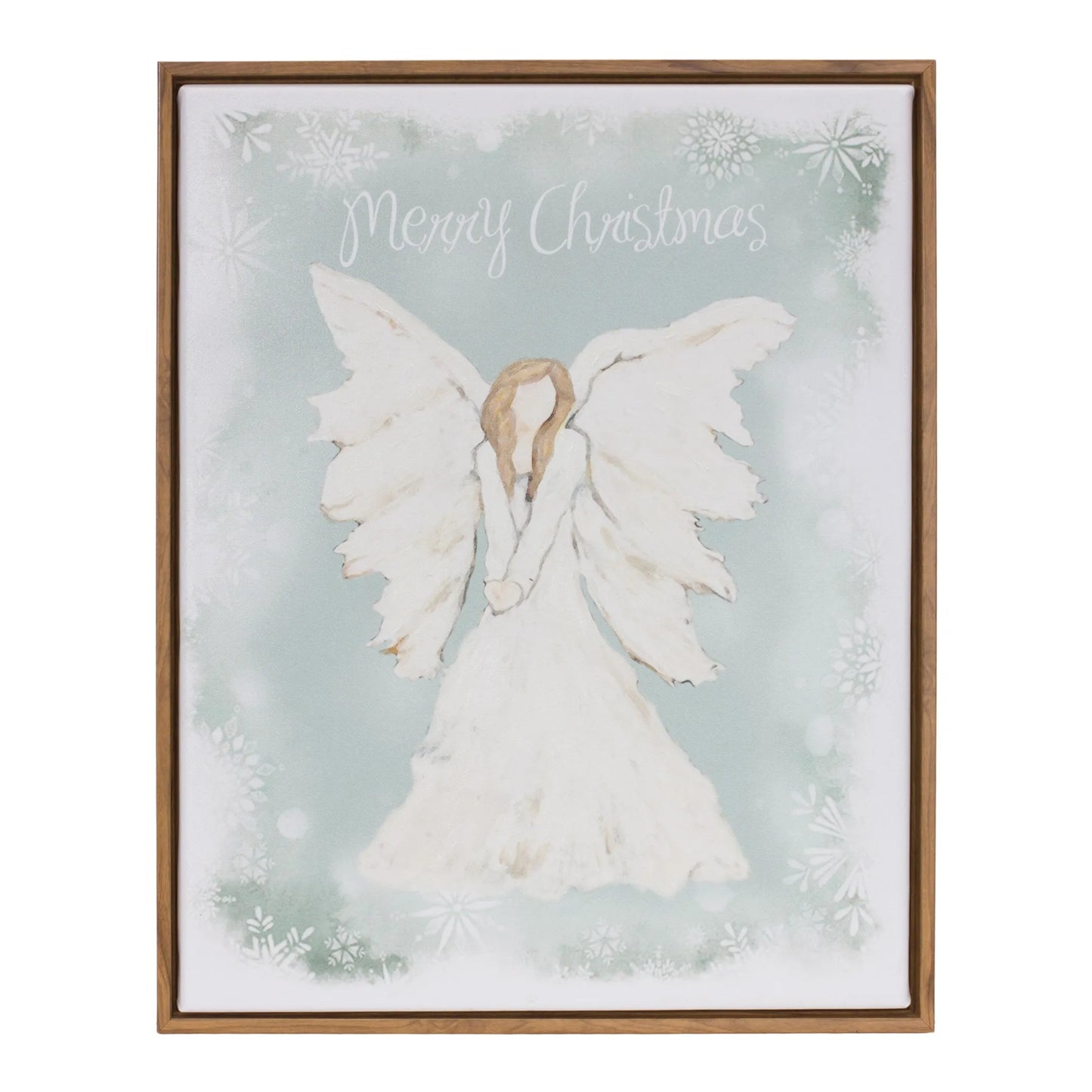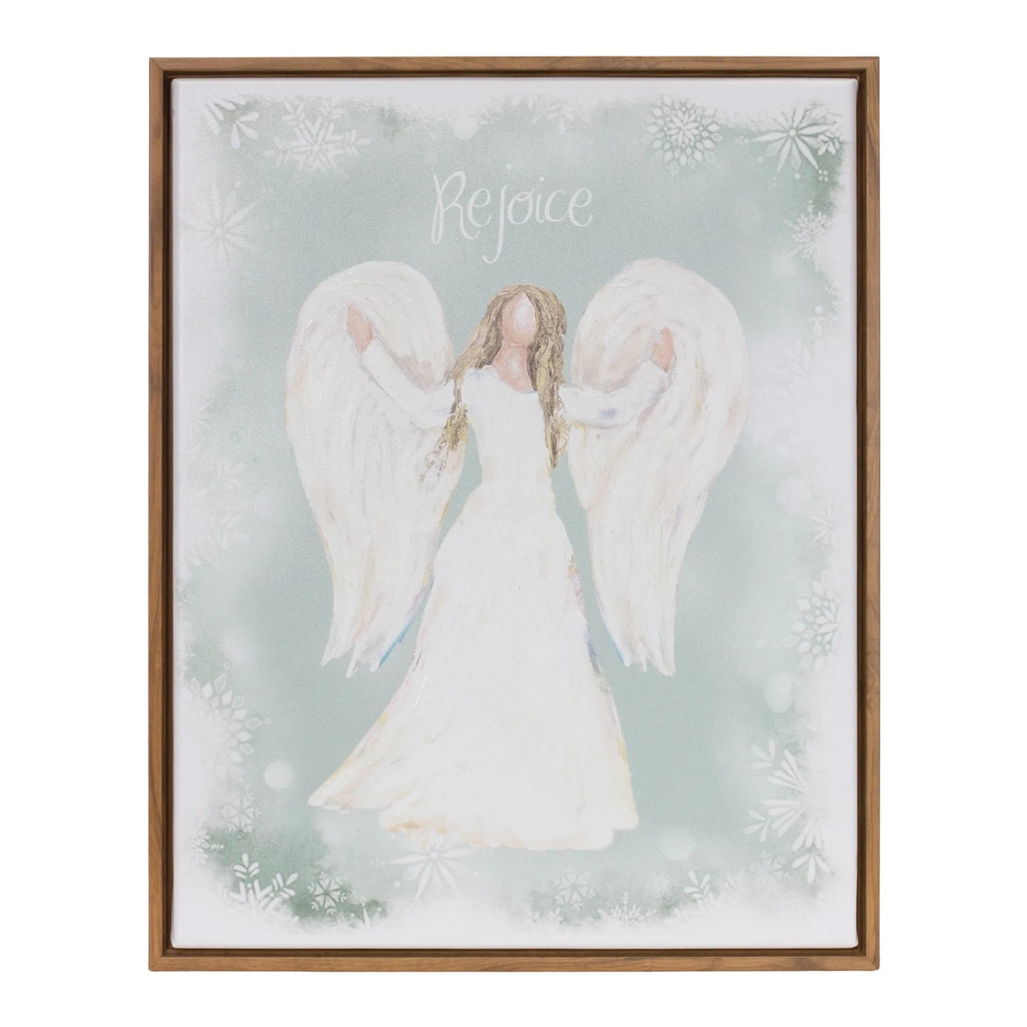 Make the holidays brighter with this set of Winter Angel Wall Art! Featuring an exquisitely painted artwork in wintry blue and white tones, this festive wall decor will transport you to a winter wonderland! Whether it's a gift for a loved one or just an addition to the holiday decorations, the "Rejoice" and "Merry Christmas" sentiment will spread joy and warmth this season. The quality canvas composition with framed wood is sure to last for seasons to come. Get ready for a truly magical holiday with Winter Angel Wall Art!