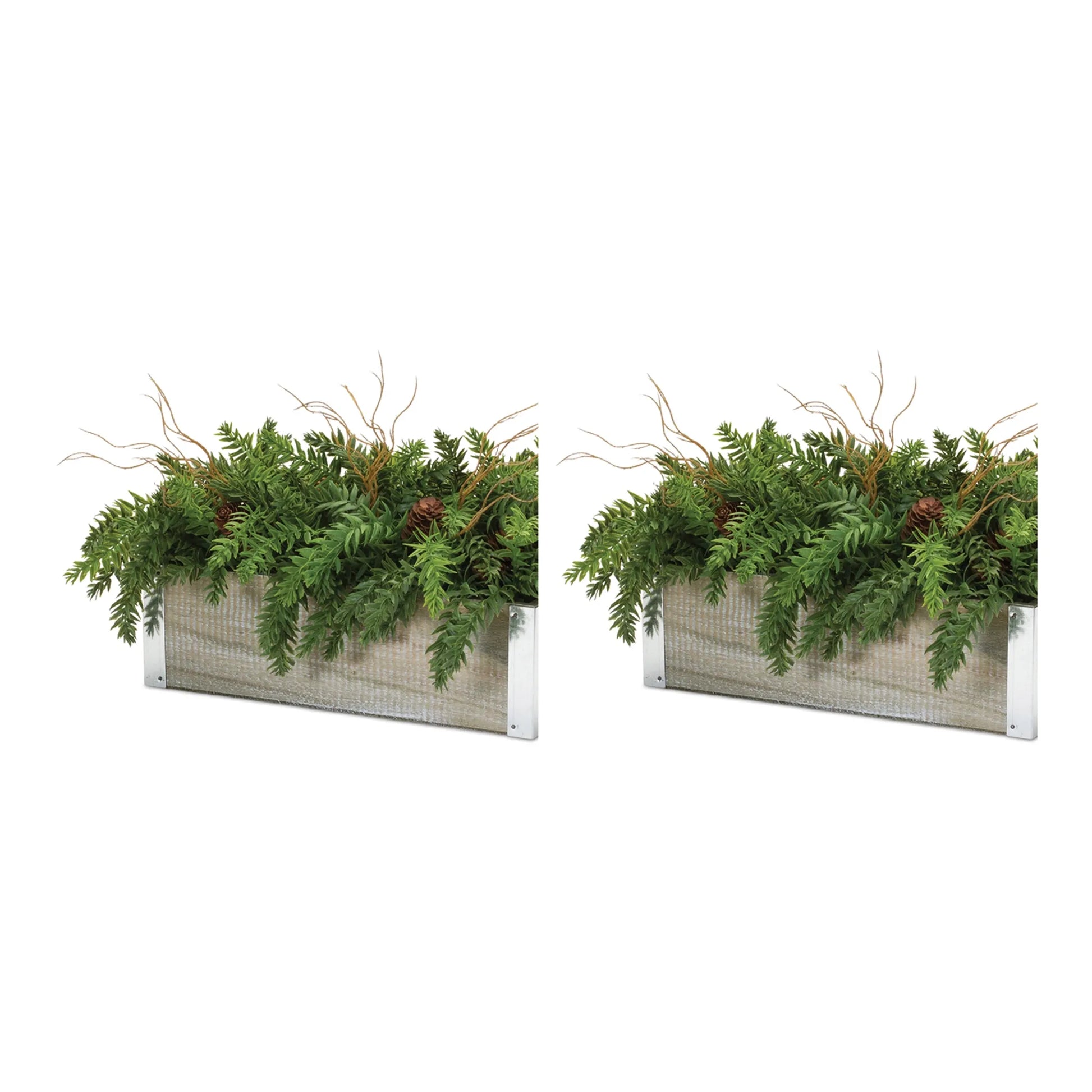 Winter Pine Centerpiece in Wood Planter - Materials: Plastic | Colors: Green; brown | Décor style: Rustic