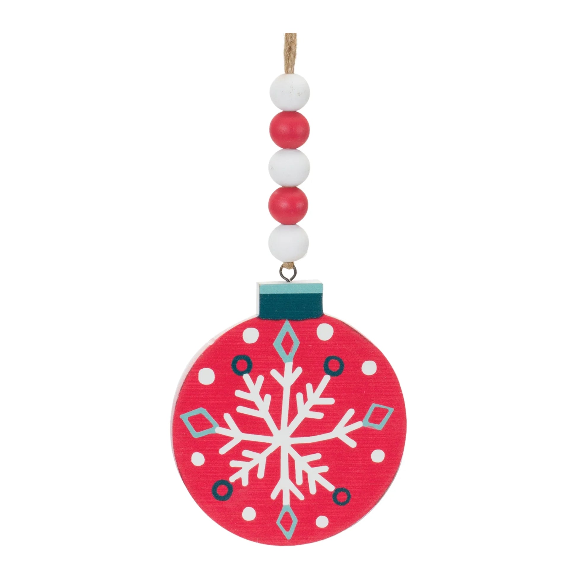Add a pop of color to your Christmas Tree with this beautiful set of Beaded Snowflake Ornaments. Featuring 12 pieces, this set's bright red and green tones, traditional snowflake designs, and modern wood bead accents are the perfect combination to create a memorable display. The quality MDF wood composition with rustic jute string hanger is sure to endure for seasons to come. Whether you're adding a touch of cheer to your home or gifting to a loved one, these ornaments will definitely bring smiles to your home.