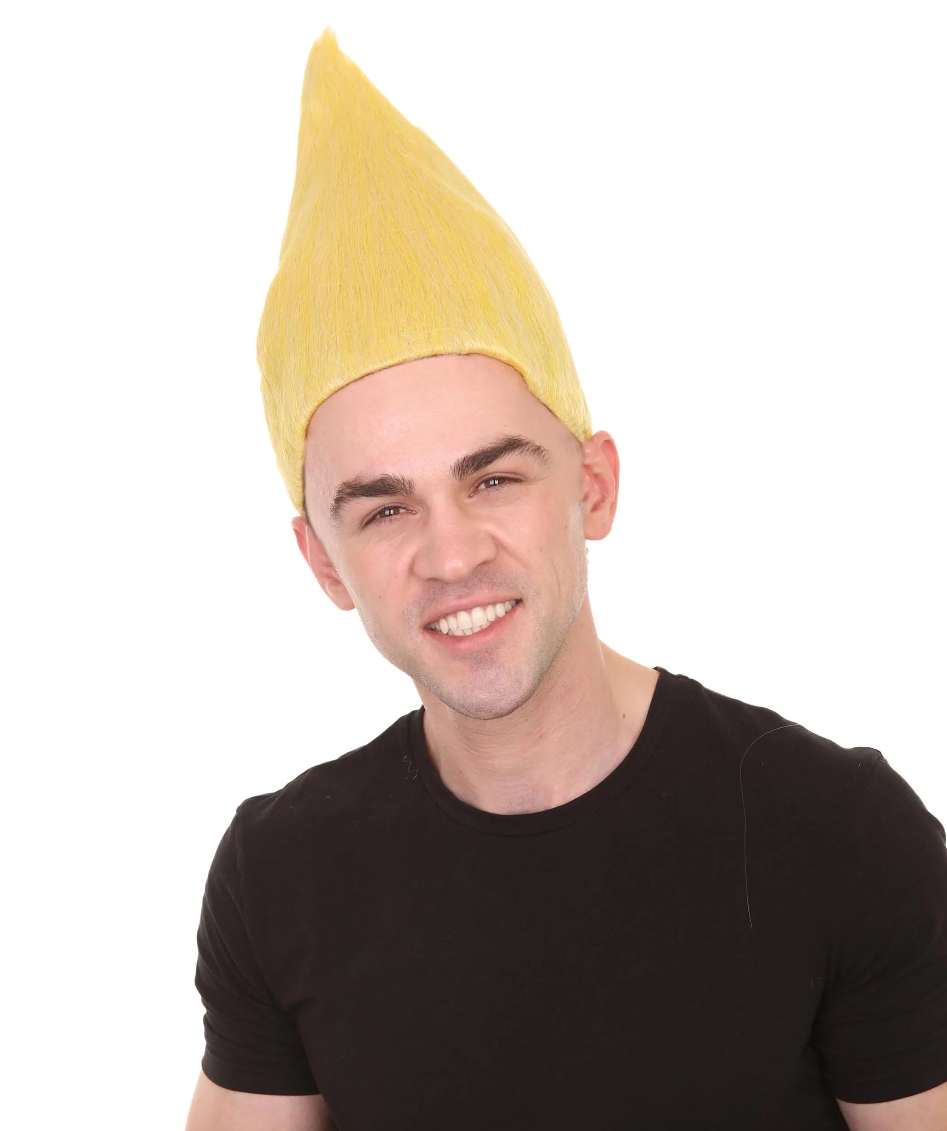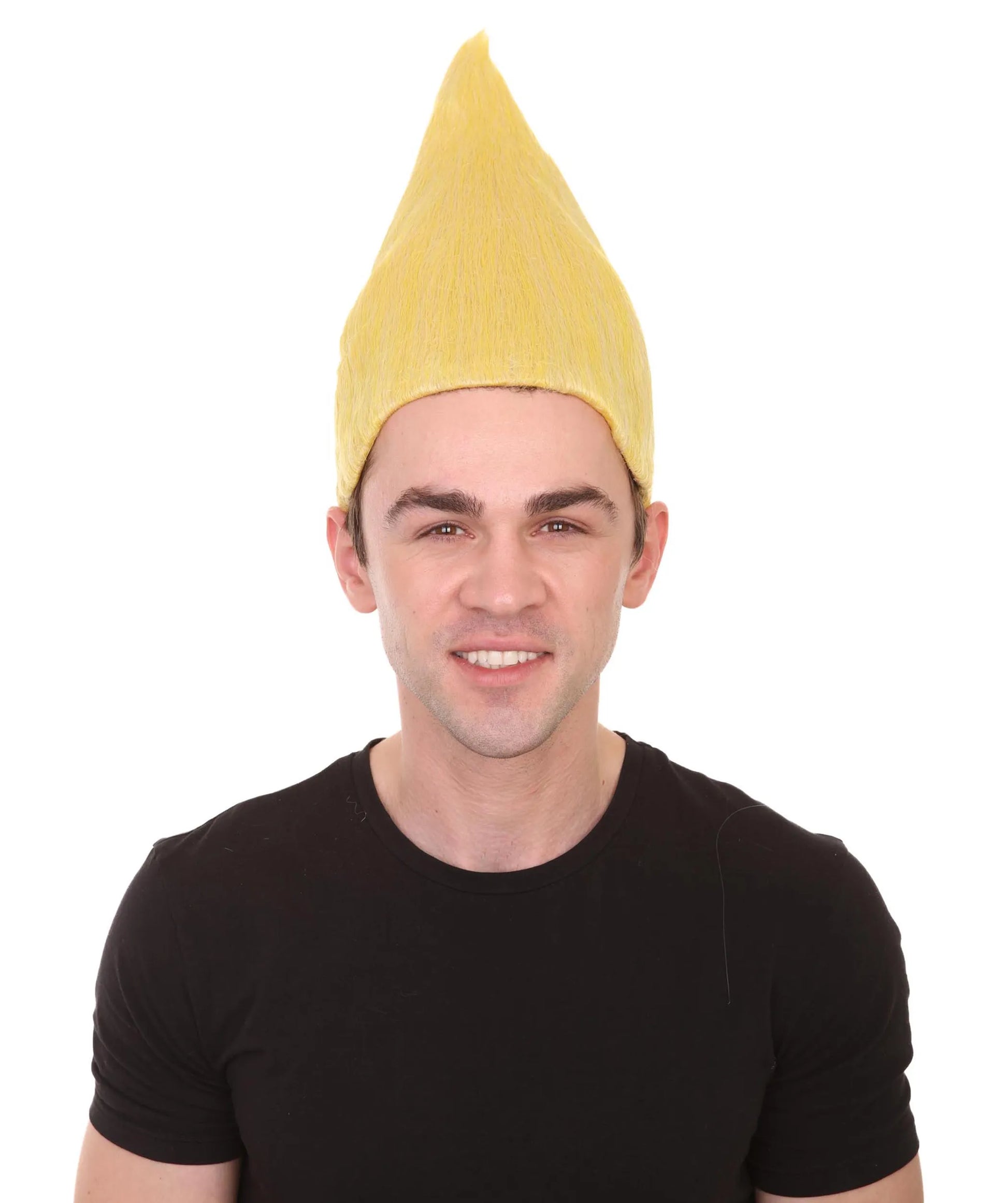 Premium Quality Yellow Gold Troll Wig. Adjustable sizing. Hair made of flame retardant synthetic fibers. Capless cap for comfort and breathability. Includes free hair net. Easy to wash with mild shampoo and cold water. Do not use with Blow dryer, Flat iron or any other hair appliance.