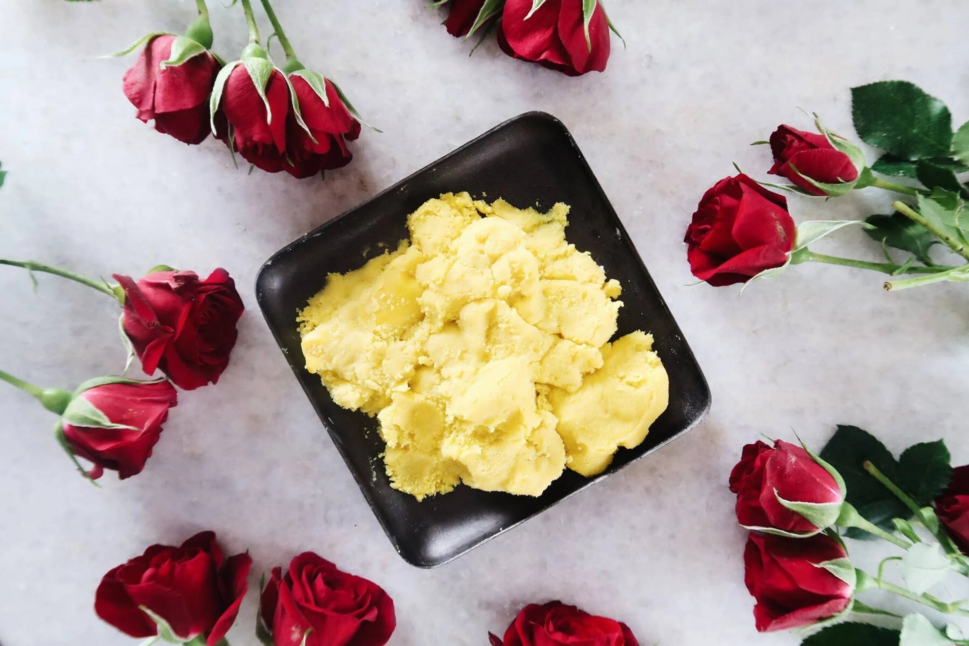 Our Yellow Shea Butter is pure unrefined shea butter with one additional ingredient, the extract of the African Borututu Tree, which has been used by African natives for centuries to help with healing and soothing the skin. The inside of this tree is a deep yellow color and is how our Yellow Shea Butter gets its color. This butter does not contain palm oil or other ingredients. Yellow Shea Butter is nutrient rich, packed with vitamins and antioxidants. It is effective in deeply moisturizing the skin and to help repair severely dry or cracked skin. Organic Yellow Shea Butter is a semi soft butter, it melts upon skin contact so can be applied directly or mixed with other ingredients to make skin care products. It is vegan and safe for all skin types. The color of this butter is deep yellow and it has a natural nutty/smoky smell to it. Yellow Shea Butter can give a light glow or slight tint when used on fair skin. Packaging may vary slightly as shown in picture.