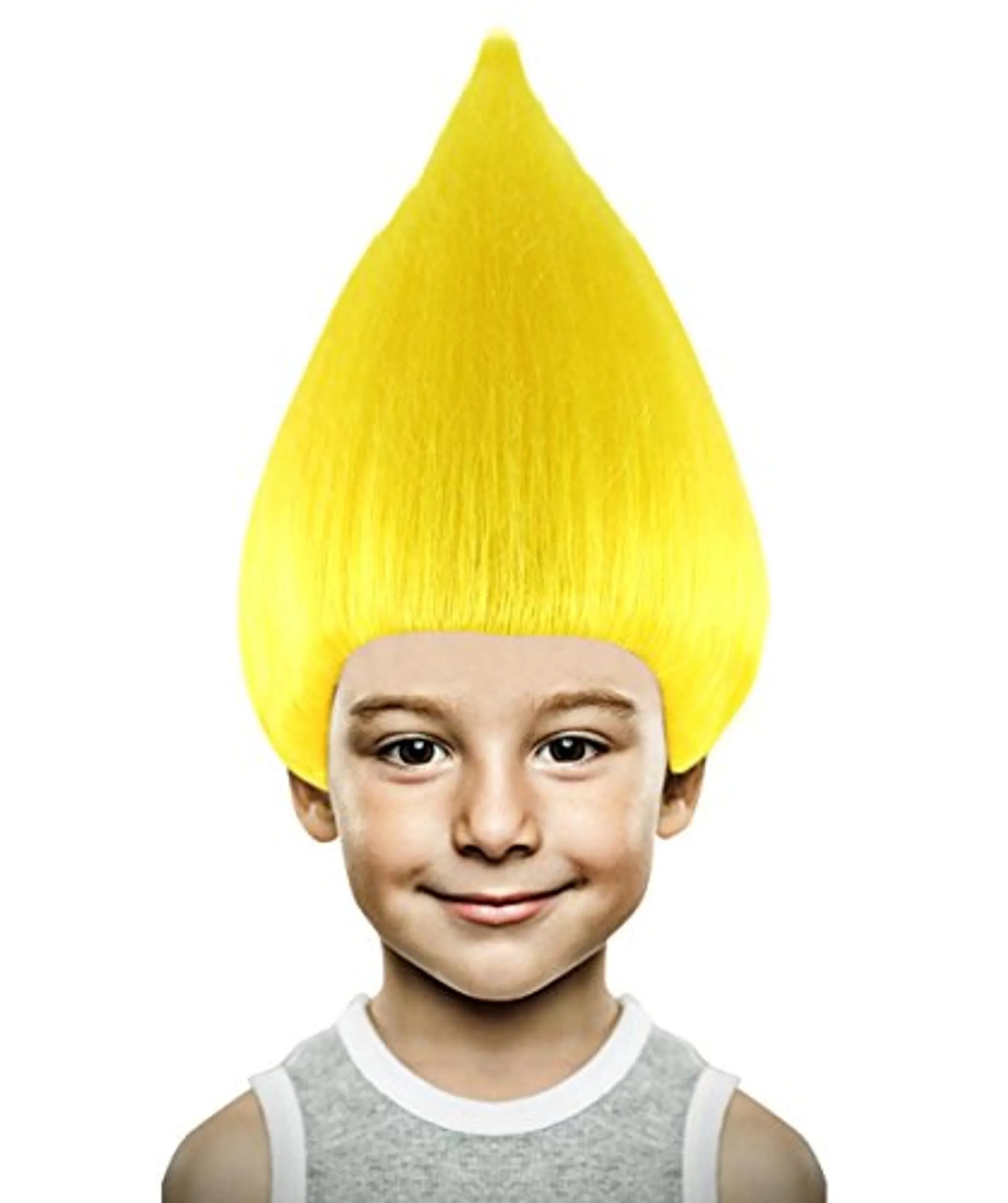 Premium Quality Yellow Troll Wig with capless cap for comfort and breathability. Adjustable sizing. Made of flame retardant synthetic fibers. Includes free hair net. Easy to wash with mild shampoo and cold water. Do not use with Blow dryer, Flat iron or any other hair appliance.