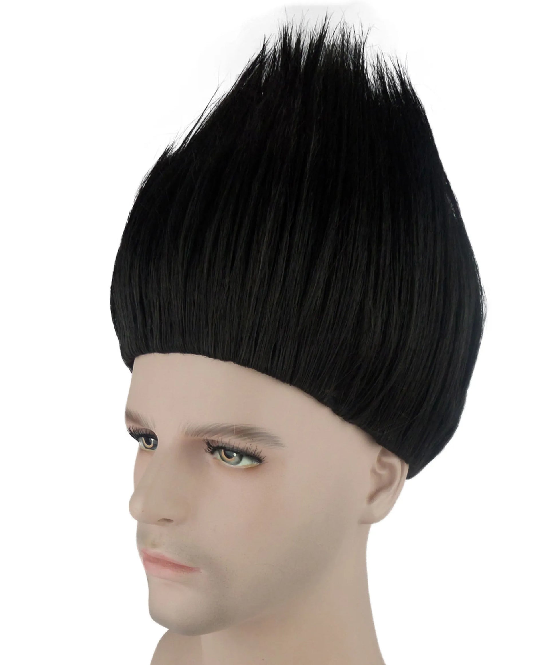 Premium Quality Youth Black Spiky Troll Wig with capless cap for comfort and breathability. Adjustable sizing. Made of flame retardant synthetic fibers. Includes free hair net. Easy to wash with mild shampoo and cold water. Do not use with Blow dryer, Flat iron or any other hair appliance.